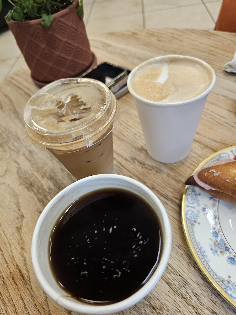 Cute little cafe with solid coffee. I got the nut latte and it was pretty good. Perfectly creamy and sweet. My wife’s Brie apple bacon croissant sandwich was also delicious, right amount of crunchiness and softness. Def need to come back.